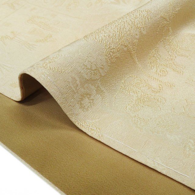 色無地 着物 正絹 袷 紋なし 地模様 シルクロード浪漫 黄櫓染 反端付き 砥粉色 身丈161cm 裄70.5cm M きもの北條 A1281-3 WWW_GLOBALQUALITYIMPORTS_COM
