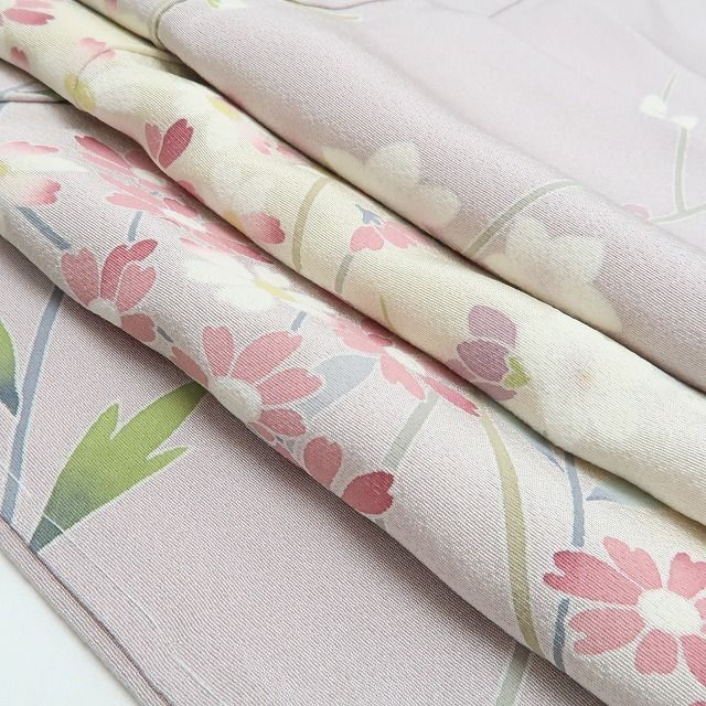 ひとたび袖を通せば、その柔らかな色香と花の意匠があなたの魅力を引き立ててくれるはず。控えめな華やぎの中に、凛とした上品さが香ります。