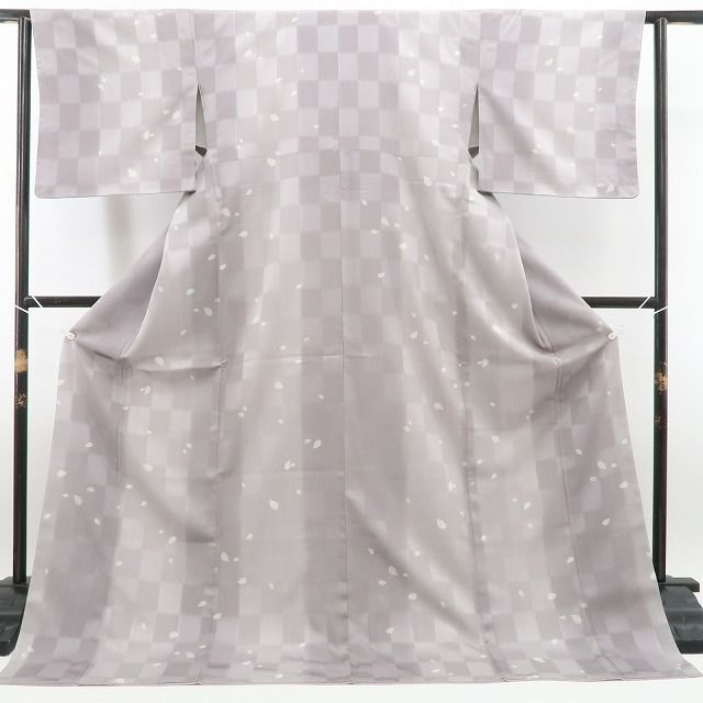 ❁tomihisa❁ 桜 市松 着物 正絹 桜を湛えて季節を綴れば創作お召に木の芽張る”仕付け糸付 お召 5517 WWW_GLOBALQUALITYIMPORTS_COM