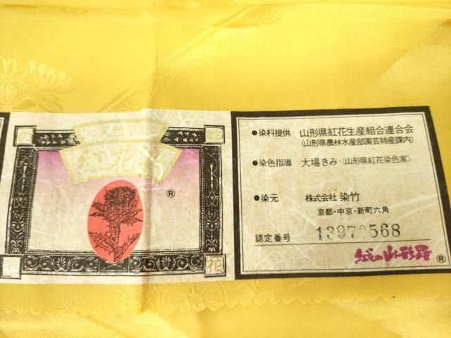 平和屋着物 振袖用長襦袢 無双仕立て 紅花染 源氏車花地紋 支子色 証紙付き 正絹 DAAX1382op WWW_GLOBALQUALITYIMPORTS_COM