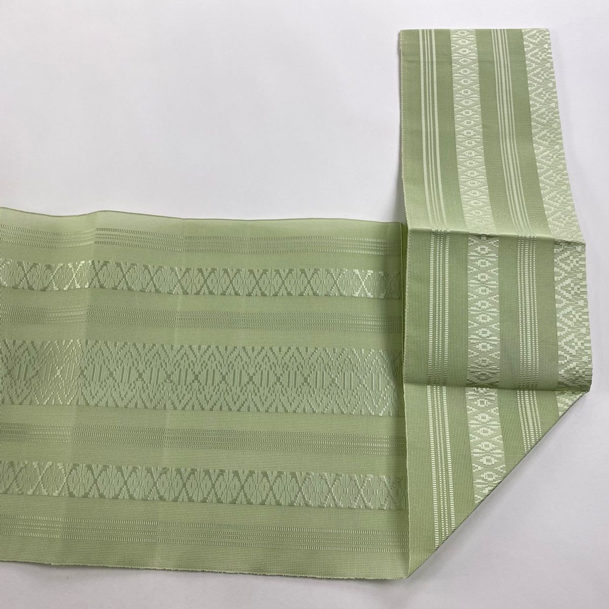 名古屋帯 証紙 夏帯 八寸名古屋帯 松葉仕立て 博多織 縞 幾何学 薄緑 正絹の検索結果
