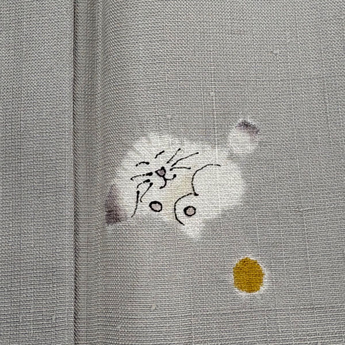 小紋 身丈156.5cm 裄丈64cm M 単衣 奇翠 青柳 赤城紬地 やまと 落款 証紙 犬 猫 絞り 灰色 正絹 WWW_GLOBALQUALITYIMPORTS_COM