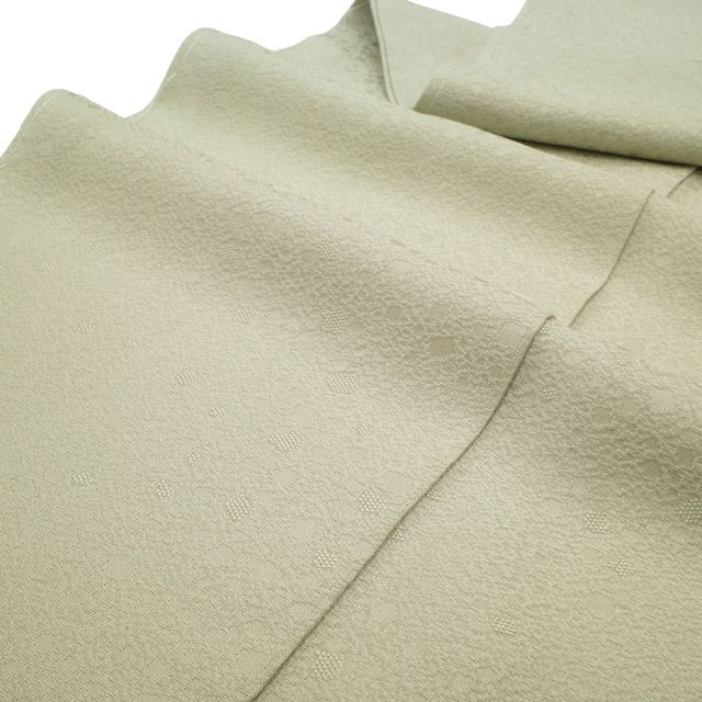 新古品 色無地 着物 正絹 寿光織 黄緑がかった ライトグレー 地紋 一つ紋 セミフォーマル 袷 春 秋 冬 仕立て上がり 身丈162 裄65 Mサイズ みやがわ sb15073の検索結果