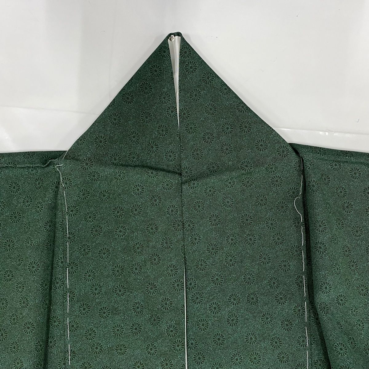 江戸小紋 身丈165.5cm 裄丈68cm L 袷 人間国宝 六谷梅軒 やまと 落款 菊唐草 深緑 正絹 WWW_GLOBALQUALITYIMPORTS_COM