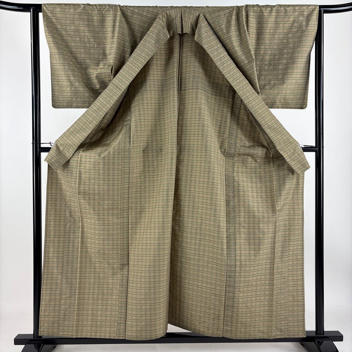 紬 身丈158.5cm 裄丈64.5cm M 単衣 南風原花織 証紙 幾何学模様 縞 灰茶 正絹 WWW_GLOBALQUALITYIMPORTS_COM