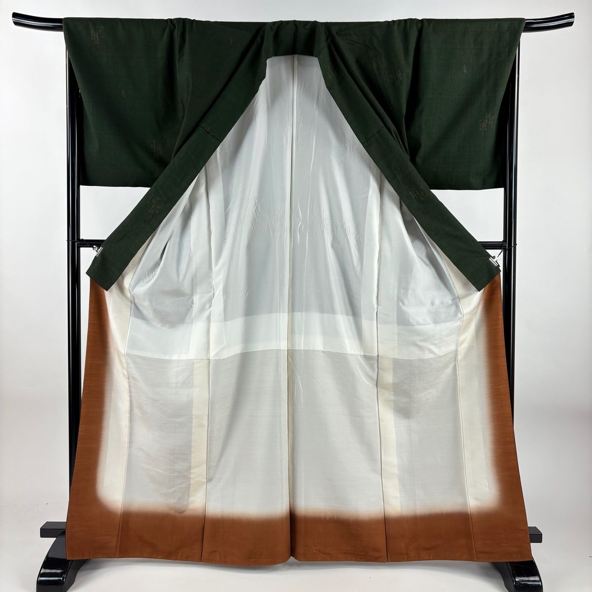 結城紬 身丈167cm 裄丈69cm L 袷 本場結城紬地 奥順 証紙 亀甲絣 井桁絣 緑 正絹の検索結果