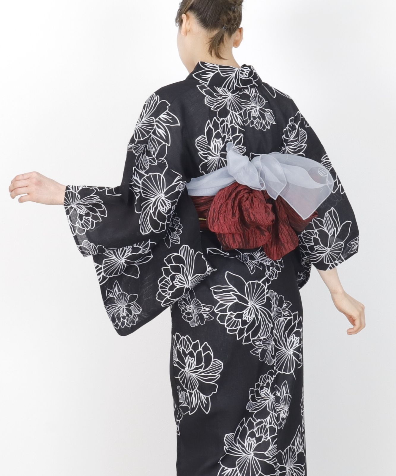 F 糸目牡丹ブラック 簡単 1人で着れる綿 セパレート浴衣2点セット 二部式浴衣 帯 セパレート浴衣 浴衣セット 夏着物 綿 レディース 二部式 セパレート イイネの検索結果
