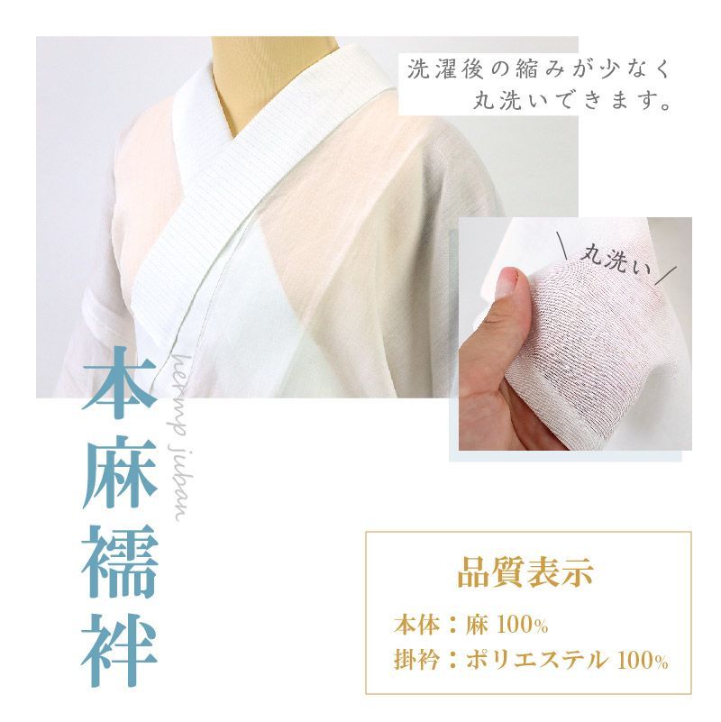 洗える 本麻長襦袢 裄大きめサイズ 半衿付き S M L LLサイズ 麻素材 肌着 ワンピース肌着 長襦袢 夏用 夏絽 うそつき襦袢 涼しい 単衣袖 礼装用 普段用 洒落用 お稽古 婦人用 和装 着物 TTの検索結果