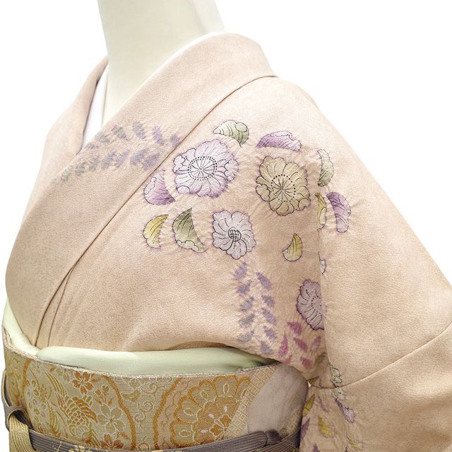 訪問着 着物 フォーマル 正絹 袷 作家物 手染め 辻が花 絞り シェルピンク色 ぼかし 春 秋 冬 着物 ピンクベージュ 上質 仕立て上がり 身丈169 裄丈69 L~TLサイズ トールサイズ LL 2L みやがわ sb16372 WWW_GLOBALQUALITYIMPORTS_COM