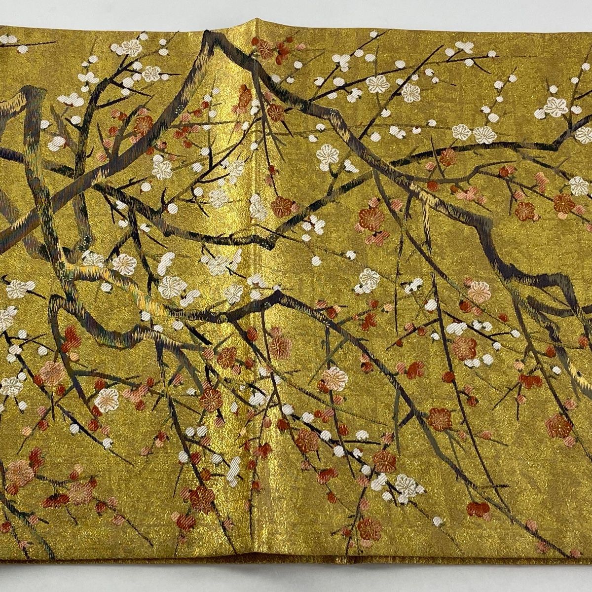 丸帯 落款 松島図屏風 紅白梅図屏風 箔 金色 全通 正絹 WWW_GLOBALQUALITYIMPORTS_COM