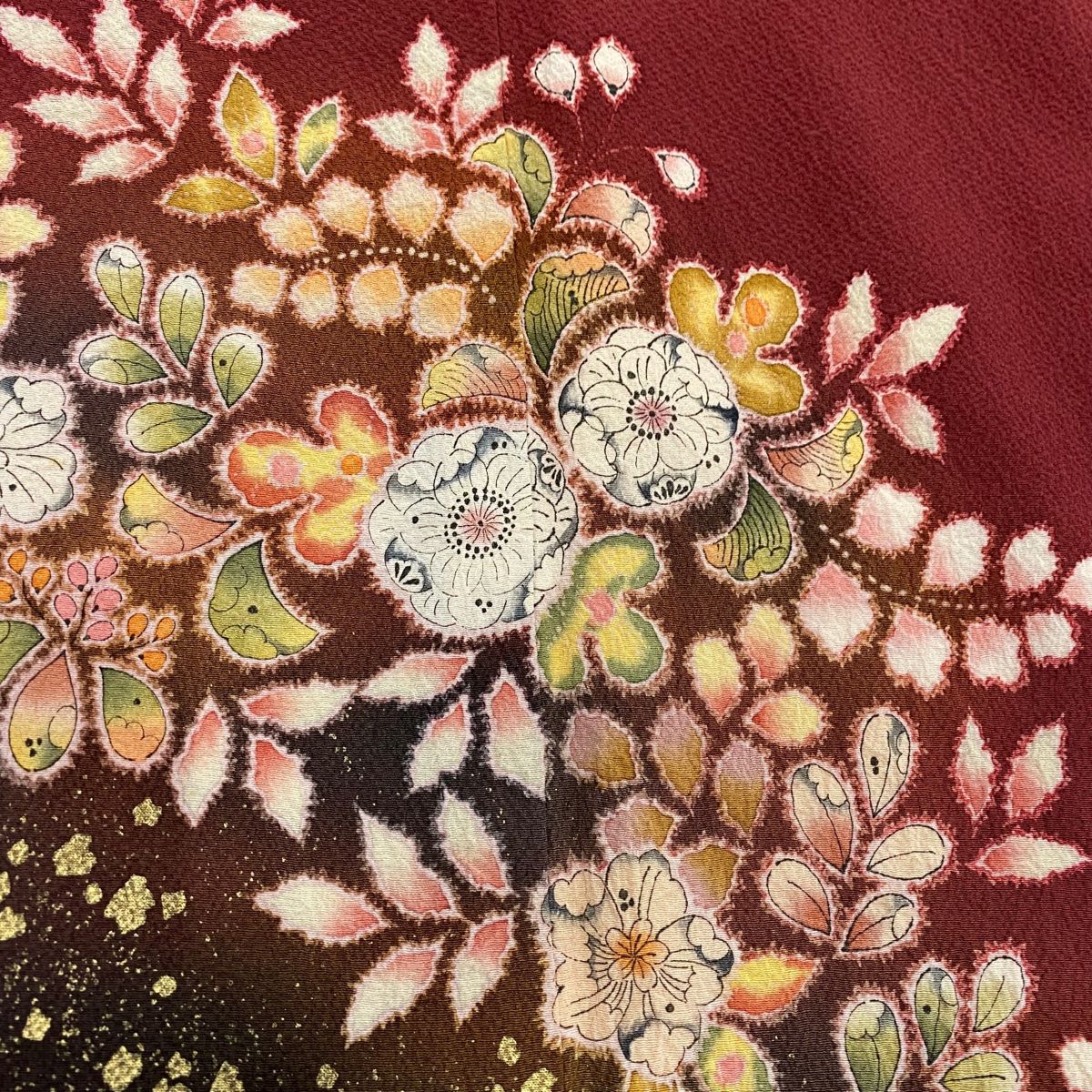 付下げ 身丈156.5cm 裄丈63.5cm S 袷 翠山工房 やまと 落款 辻が花 金彩 ぼかし えんじ色 正絹 WWW_GLOBALQUALITYIMPORTS_COM