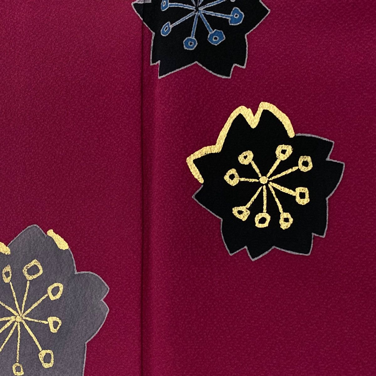 付下げ 身丈167cm 裄丈70cm L 袷 草野一騎 落款 桜 金彩 濃ピンク 正絹 一つ紋 WWW_GLOBALQUALITYIMPORTS_COM
