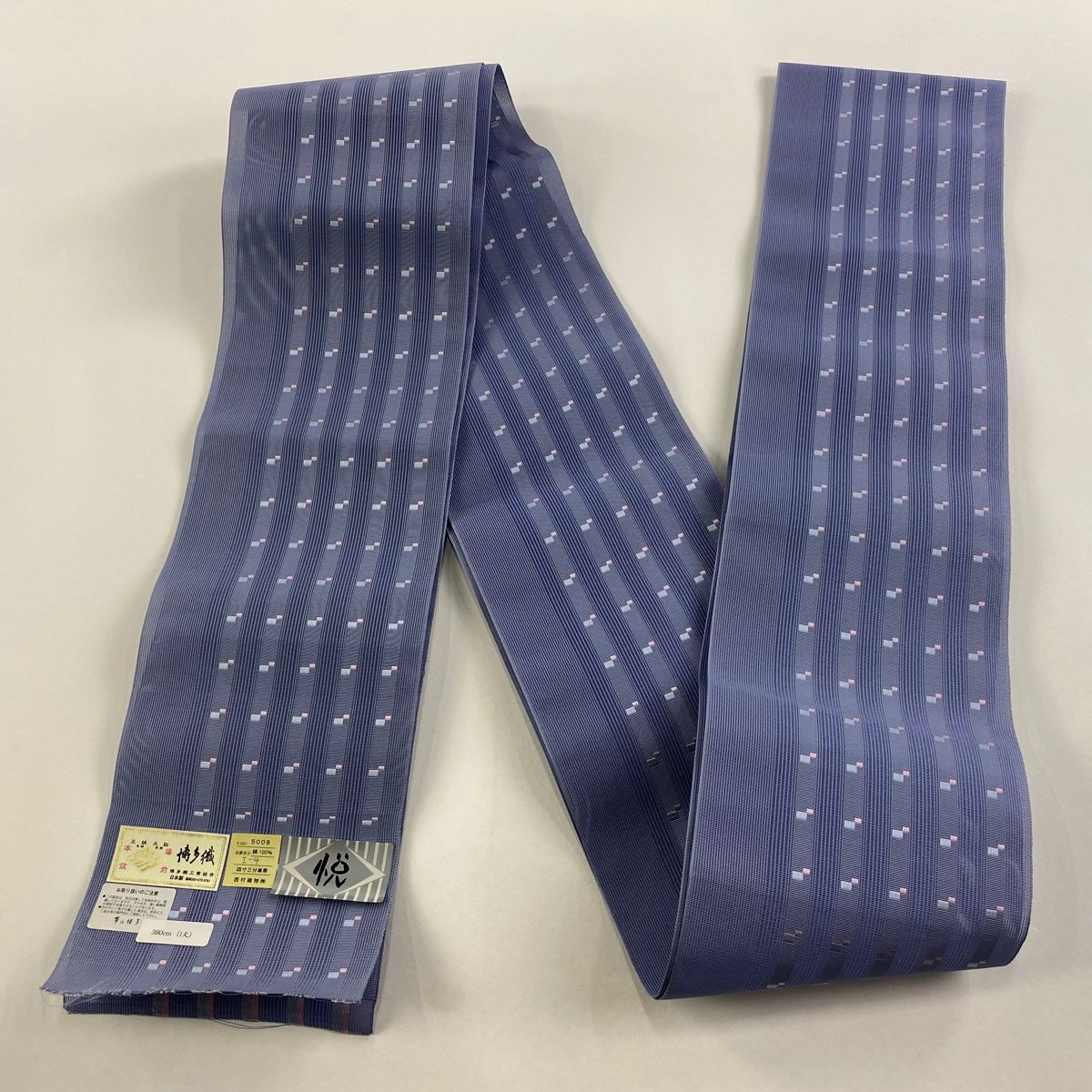 半幅帯 証紙 夏帯 本場筑前博多織 縞 幾何学模様 青灰色 正絹の検索結果