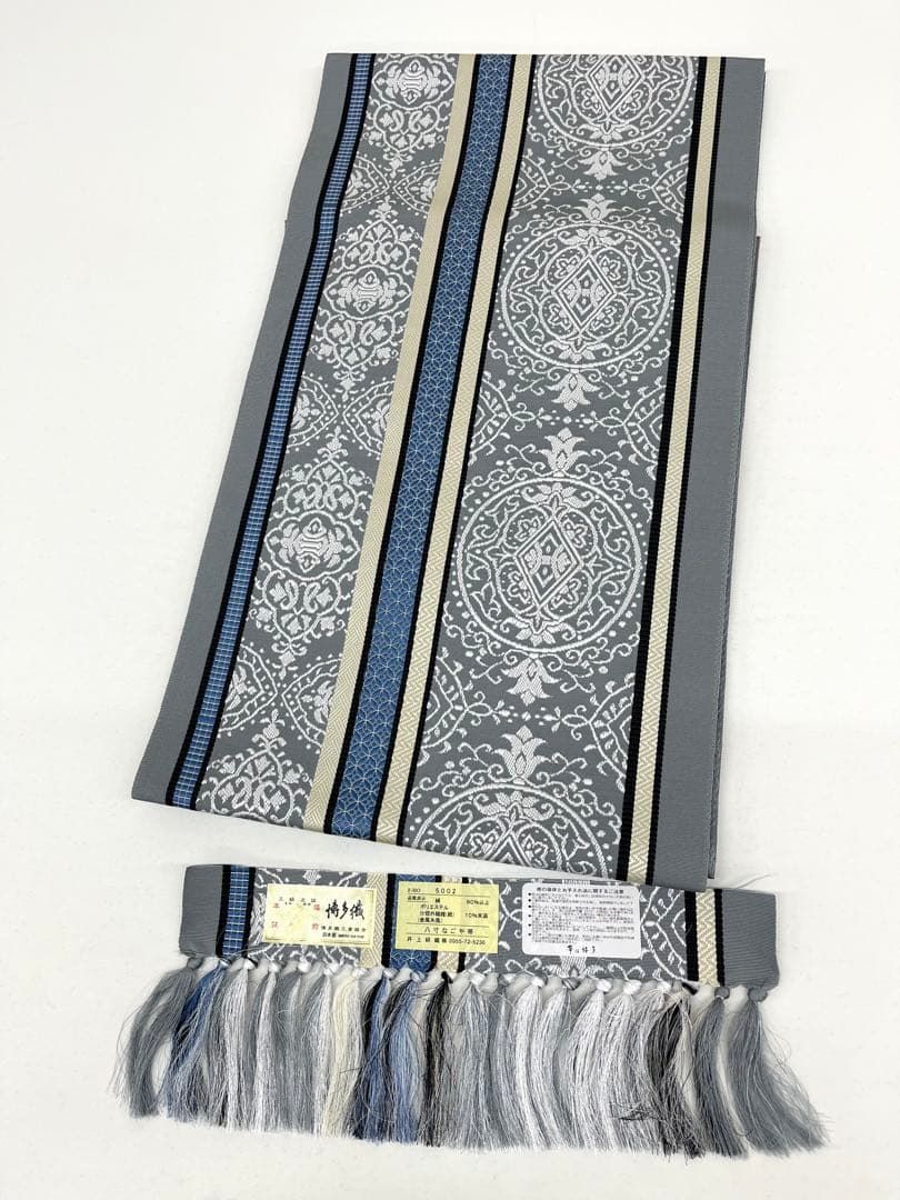 本場筑前博多織 井上絹織 全通 八寸名古屋帯 松葉仕立て 唐花 正絹 WWW_GLOBALQUALITYIMPORTS_COM