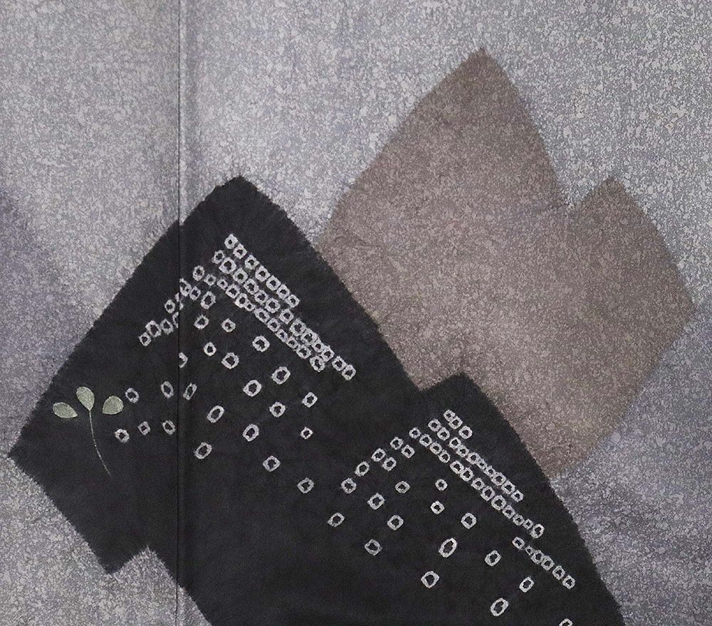 本場縞大島紬 絞り訪問着 袷 正絹 ライトグレー 薄グレー 墨黒 絞り 遠山 鹿の子 箔 南天 Sサイズ ki31097 レディース みの検索結果