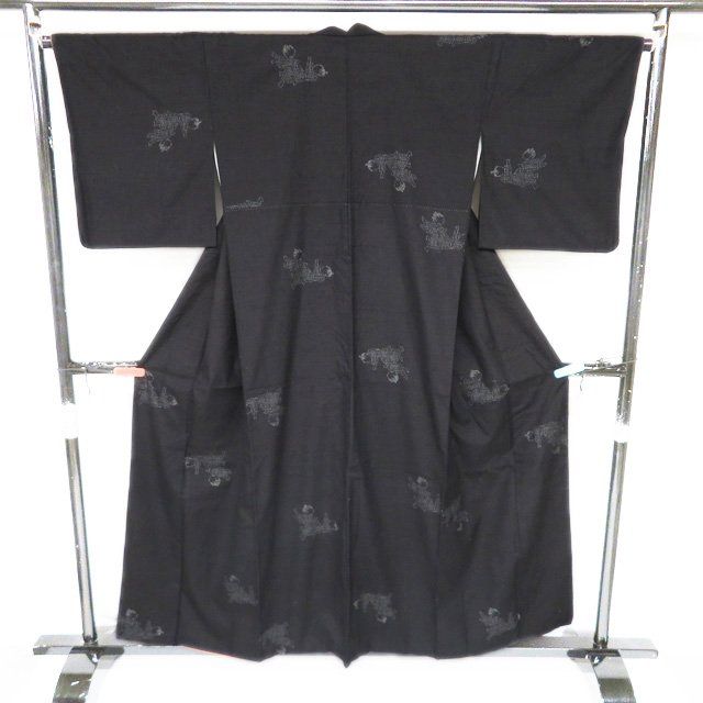 特選 重要無形文化財 本場 結城紬 着物 正絹 袷 奥順 ラベル付き 黒色 身丈156cm 裄66.5cm M きもの北條 A1275-6 WWW_GLOBALQUALITYIMPORTS_COM