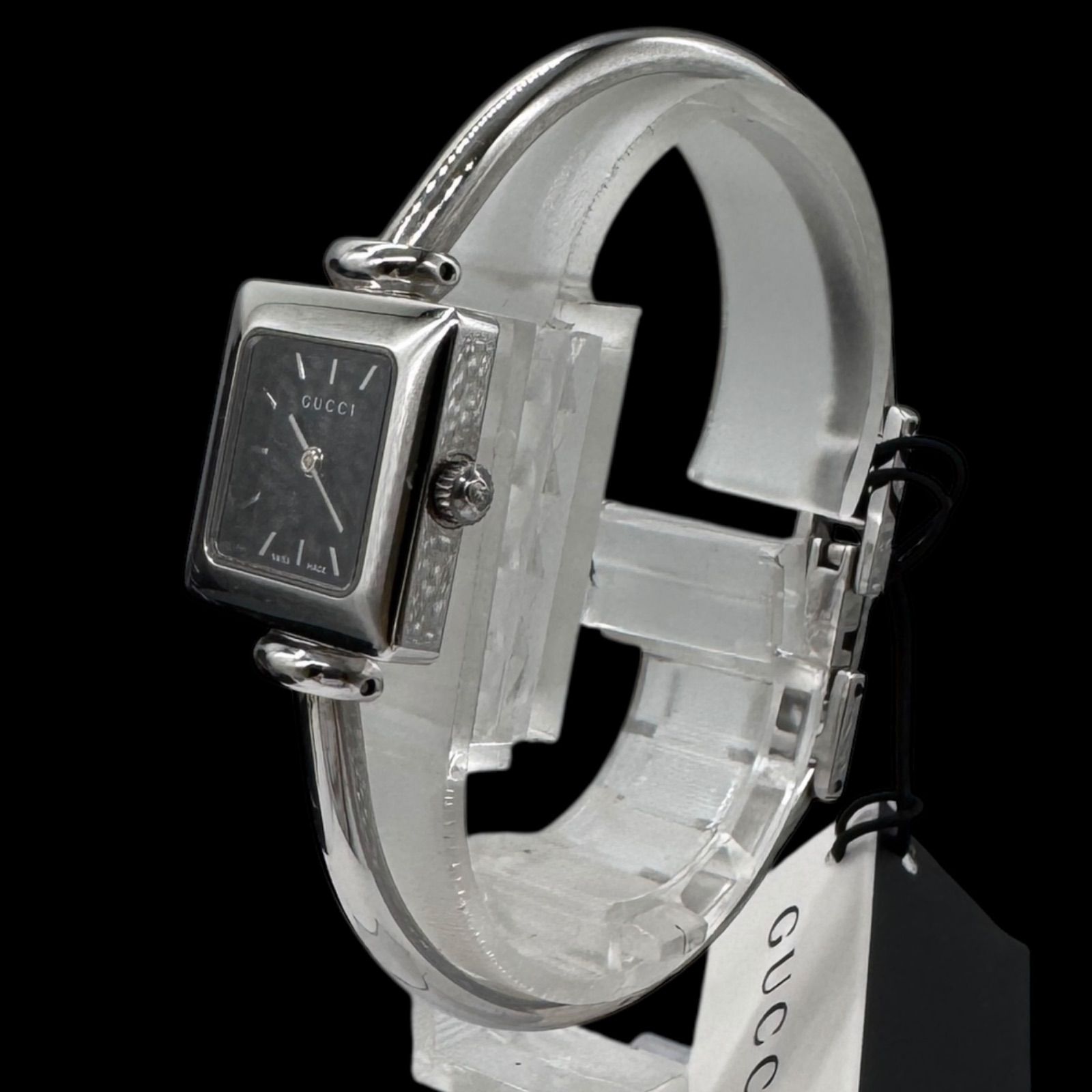 電池稼働 GUCCI グッチ 1900L 黒文字盤 レディース腕時計 スクエア ブレスウォッチ SS シルバー クォーツ WWW_GLOBALQUALITYIMPORTS_COM