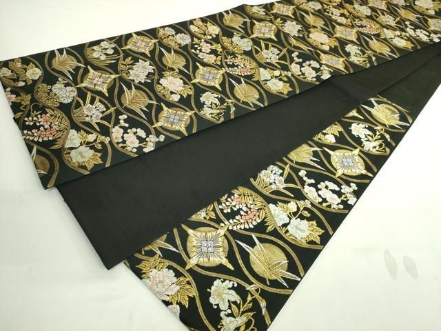 平和屋着物 上 伝統工芸士 染の匠美 六通柄袋帯 唐織 草花文 黒地 金糸 DZAA8567kh5 WWW_GLOBALQUALITYIMPORTS_COM