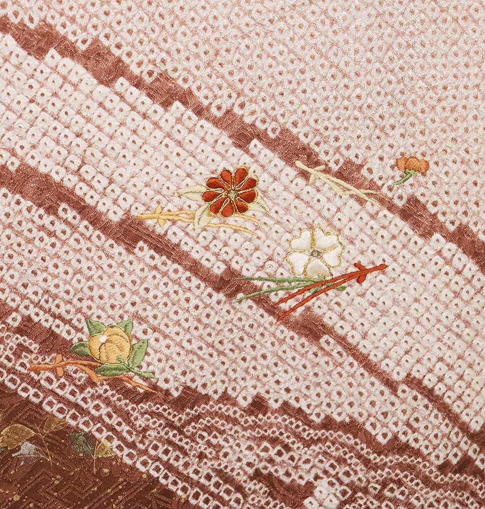 総絞り訪問着 袷 正絹 ピンク 赤紫 赤茶 刺繍 菊 松竹梅 絞り 熨斗文 箔 万寿菊 Lサイズ ki31102 フォーマル 30代 40代 50代 みの検索結果