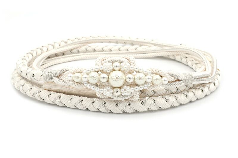 帯締め 振袖用 飾り紐 長尺 Lサイズ 正絹 成人式 白 銀 パール ビーズ 丸組紐 翠嵐工房 フォーマル セミフォーマル 礼 No.10-6822 WWW_GLOBALQUALITYIMPORTS_COM