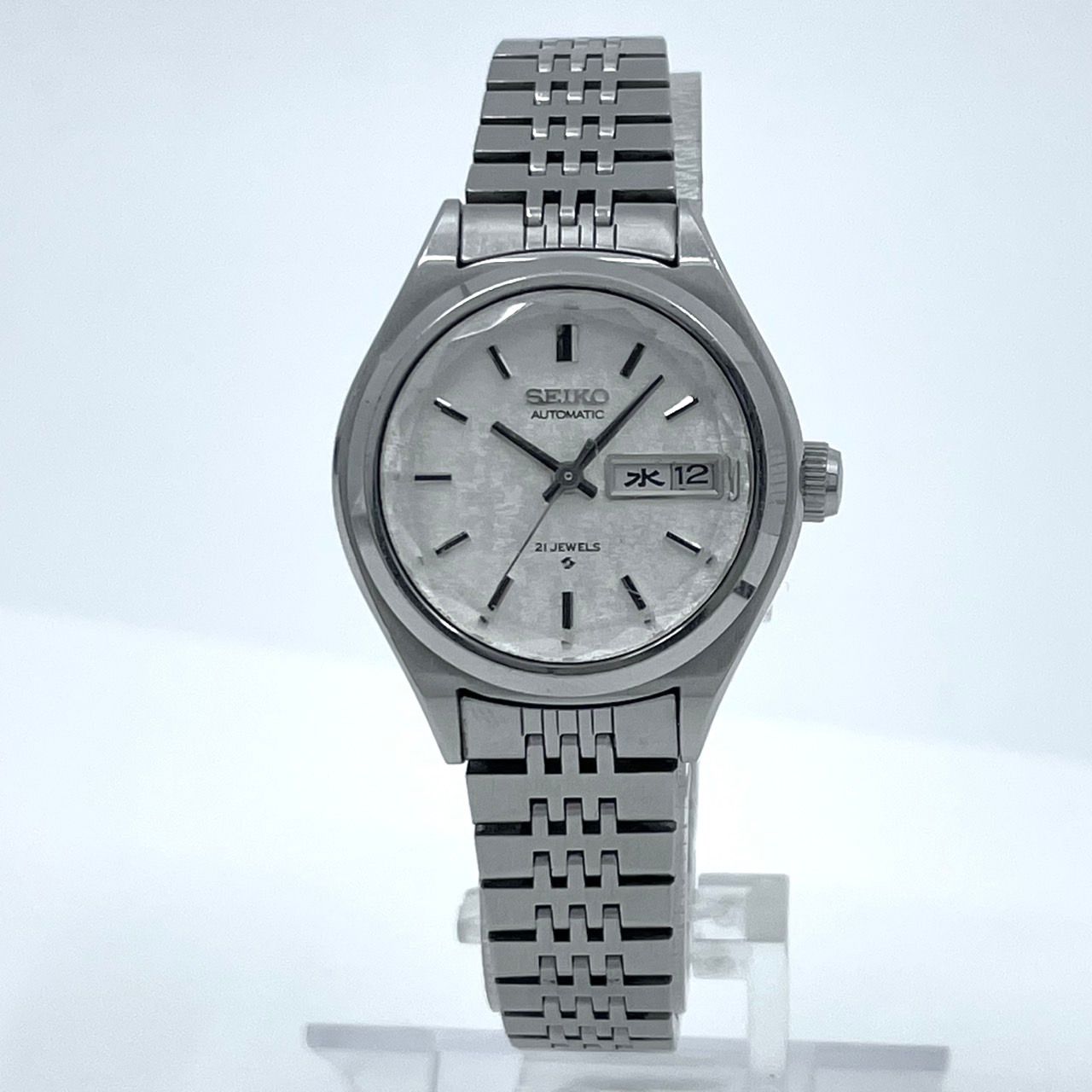 稼働品 seiko セイコー 腕時計 2906-0110 レディース 自動巻き 21石 デイデイト 漢字曜日 シルバー文字盤 ラウンド アンティーク クラシック レトロ モデル クリーニング済 G6の検索結果