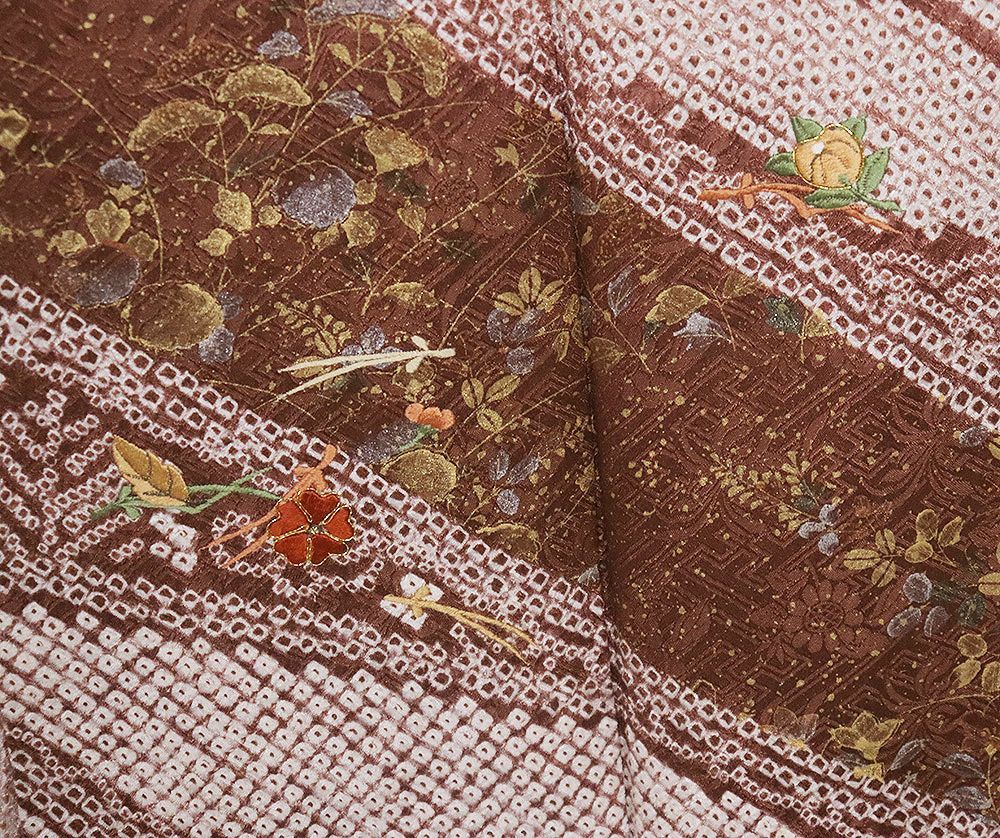 総絞り訪問着 袷 正絹 ピンク 赤紫 赤茶 刺繍 菊 松竹梅 絞り 熨斗文 箔 万寿菊 Lサイズ ki31102 フォーマル 30代 40代 50代 み WWW_GLOBALQUALITYIMPORTS_COM