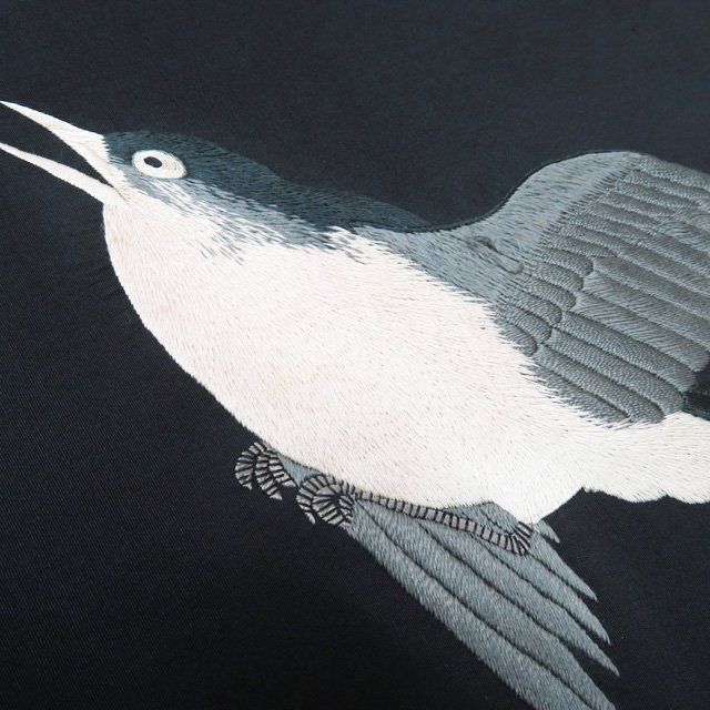 アンティーク 昼夜帯 リサイクル 正絹 お太鼓柄 刺繍 鳥と和本の図 黒色 多色 きもの北條 A1266-12 WWW_GLOBALQUALITYIMPORTS_COM