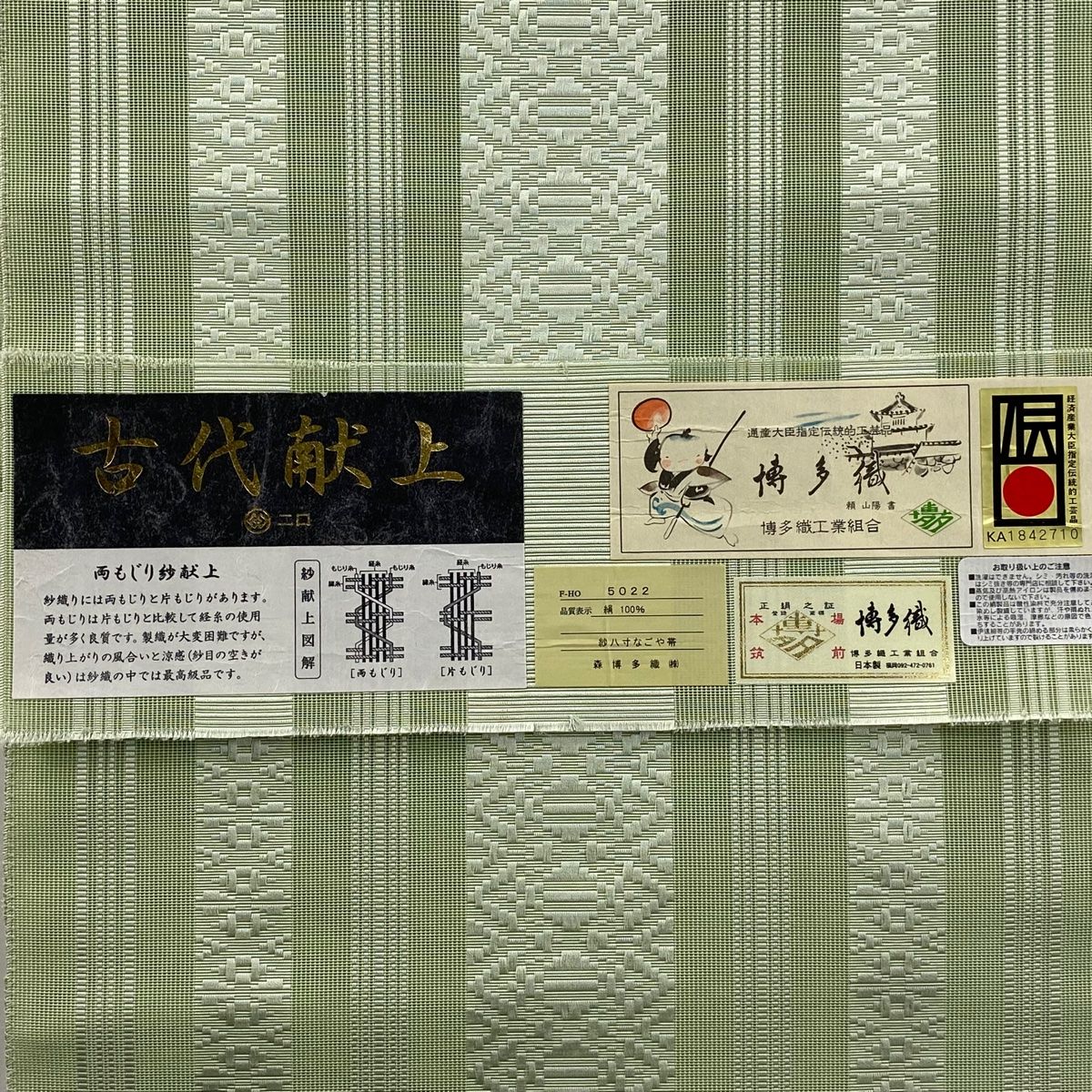 名古屋帯 証紙 夏帯 八寸名古屋帯 松葉仕立て 博多織 縞 幾何学 薄緑 正絹 WWW_GLOBALQUALITYIMPORTS_COM