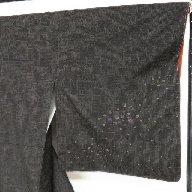 大島紬 着物 正絹 袷 セミフォーマル 幾何学模様 枡模様 黒色 茶系色 多色 身丈168cm 裄67.5cm L トール きもの北條 A1279-6 WWW_GLOBALQUALITYIMPORTS_COM